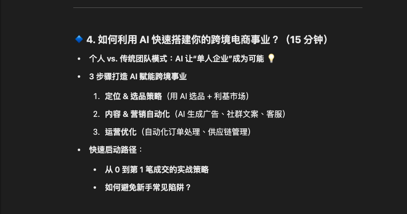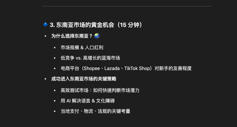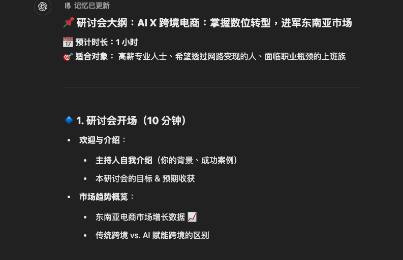 例如 我想用這個主題 「AI X 跨境電商:掌握數位轉型,進軍東南亞市場」