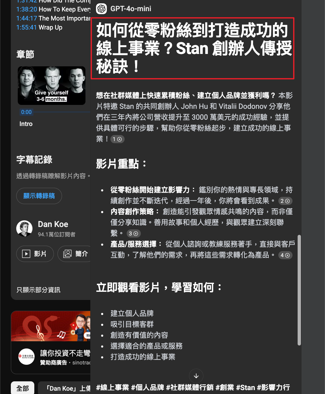 - 高效AI學習 - 透過MaxAI-逆向推導Youtube影片學習法