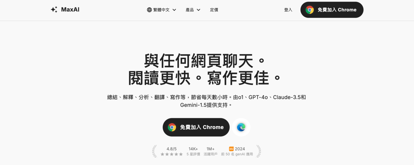 MaxAI:會用AI的人,已經省下了 2小時時間。 獲得他要的重點